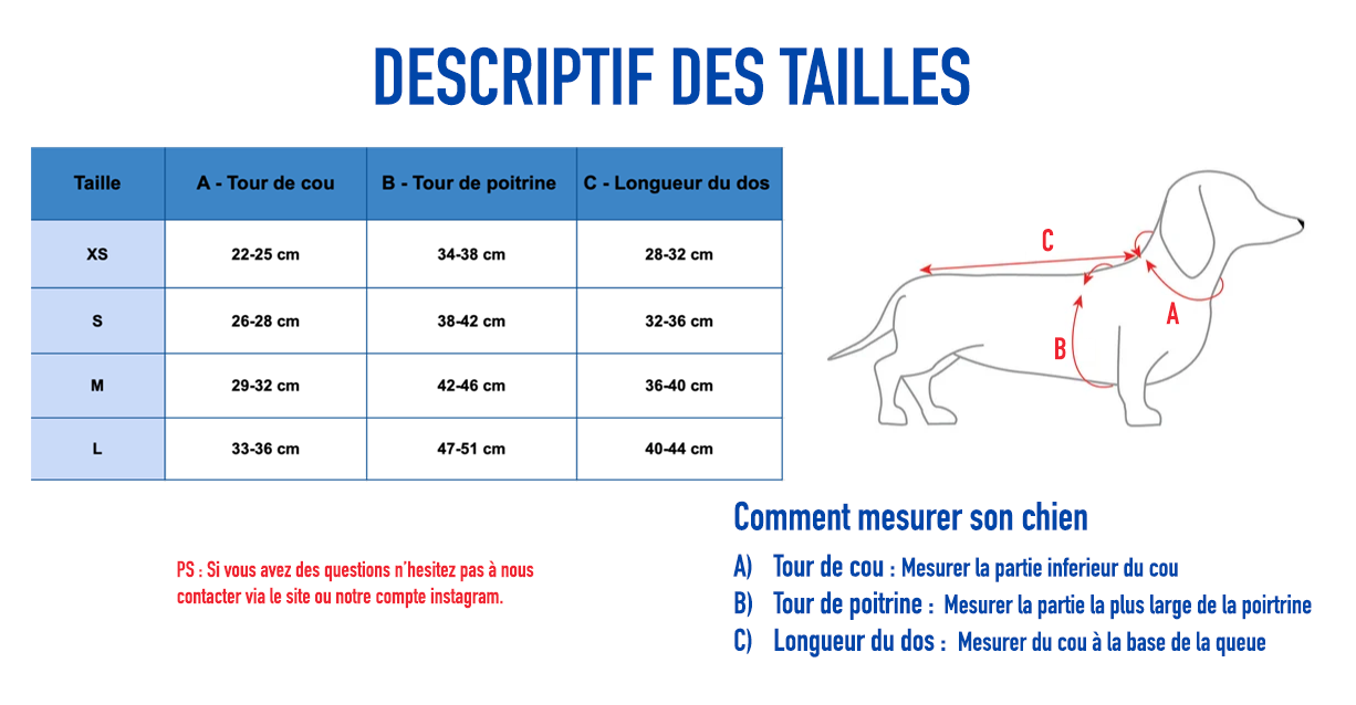 *Si les mesures indiqués ne correspondent pas à votre teckel, n'hésitez pas à nous contacter, nous trouverons une solution ensemble.